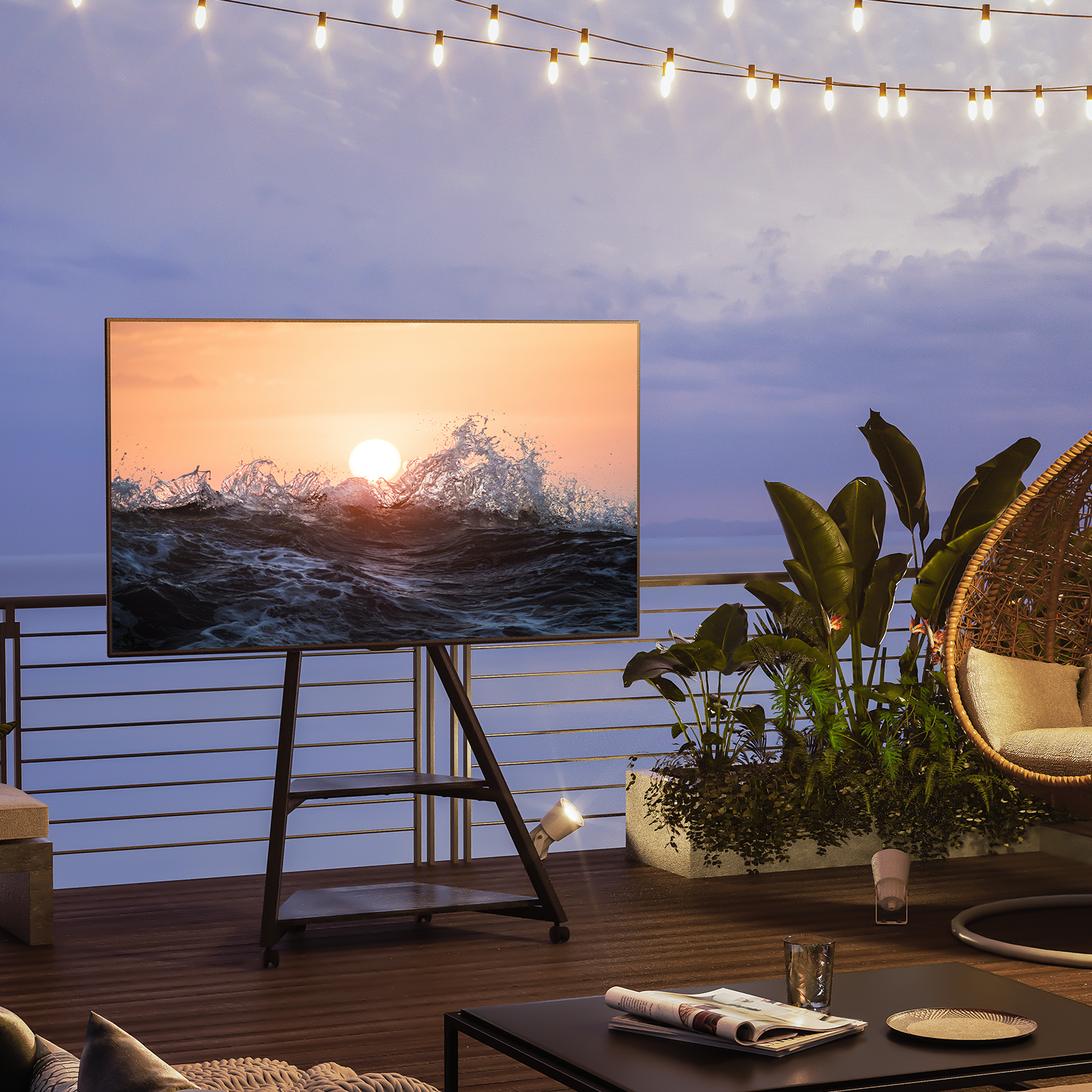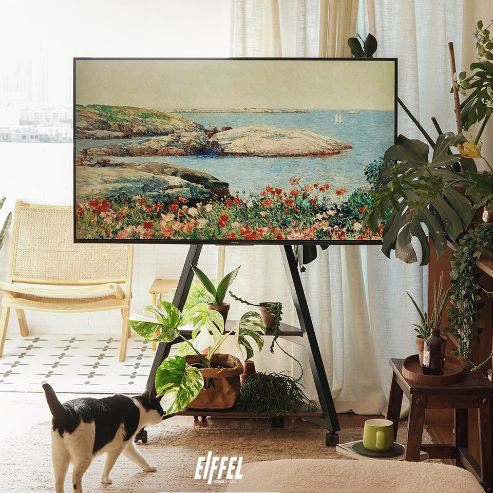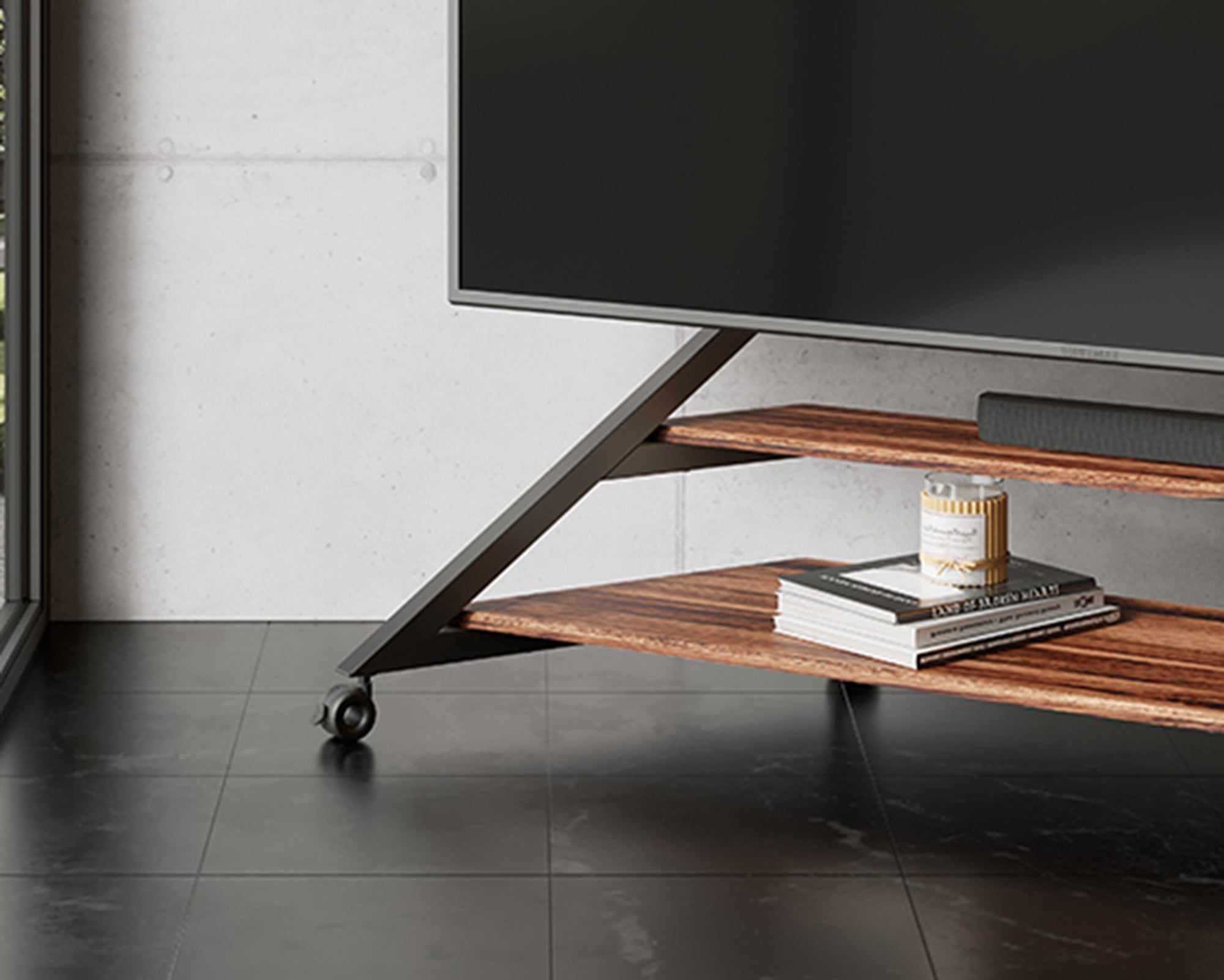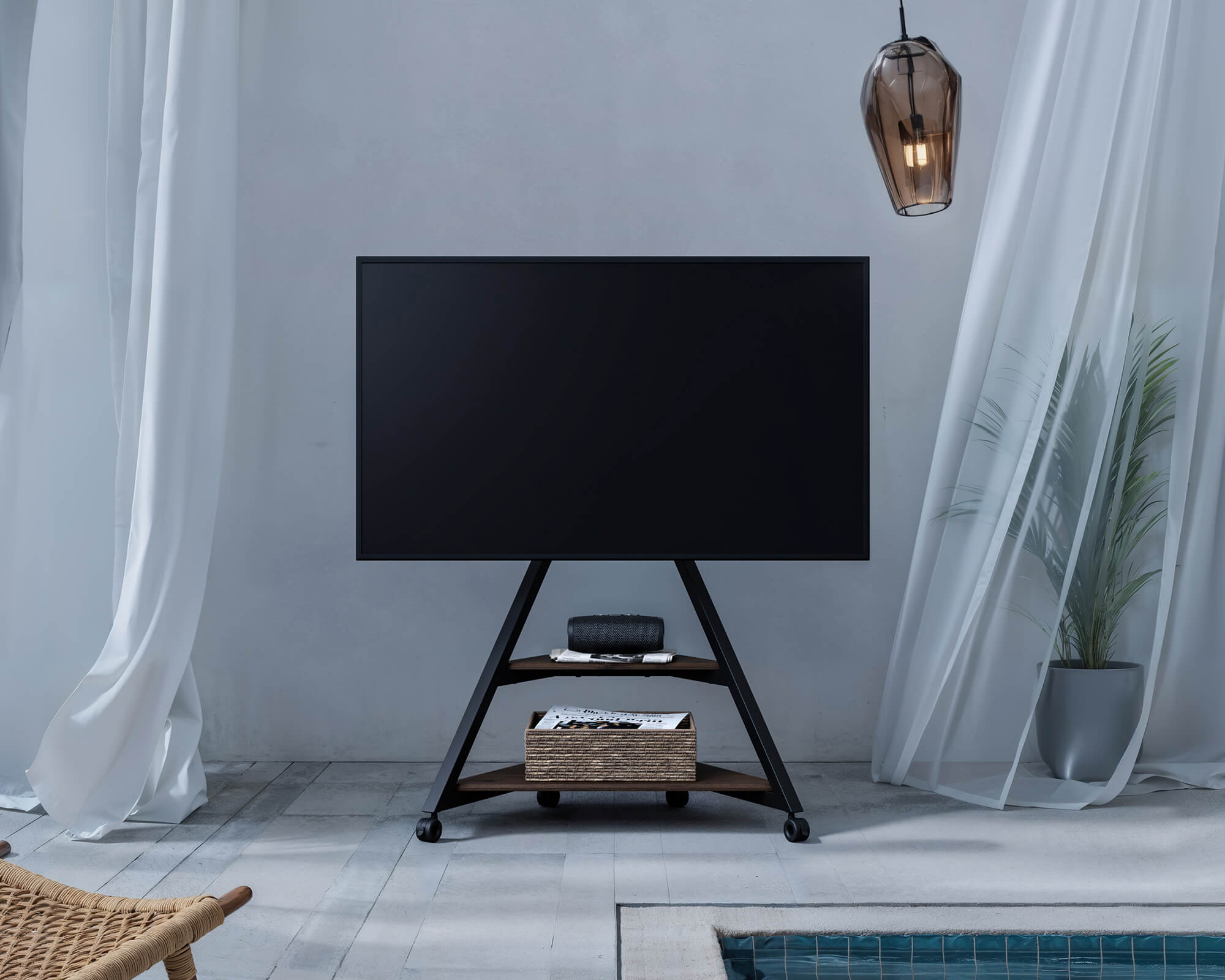 Los soportes de TV de la serie Eiffel están equipados con ruedas para que pueda moverlos rápidamente tanto en interiores como en exteriores. Así podrá disfrutar de sus experiencias audiovisuales en cualquier momento y lugar.