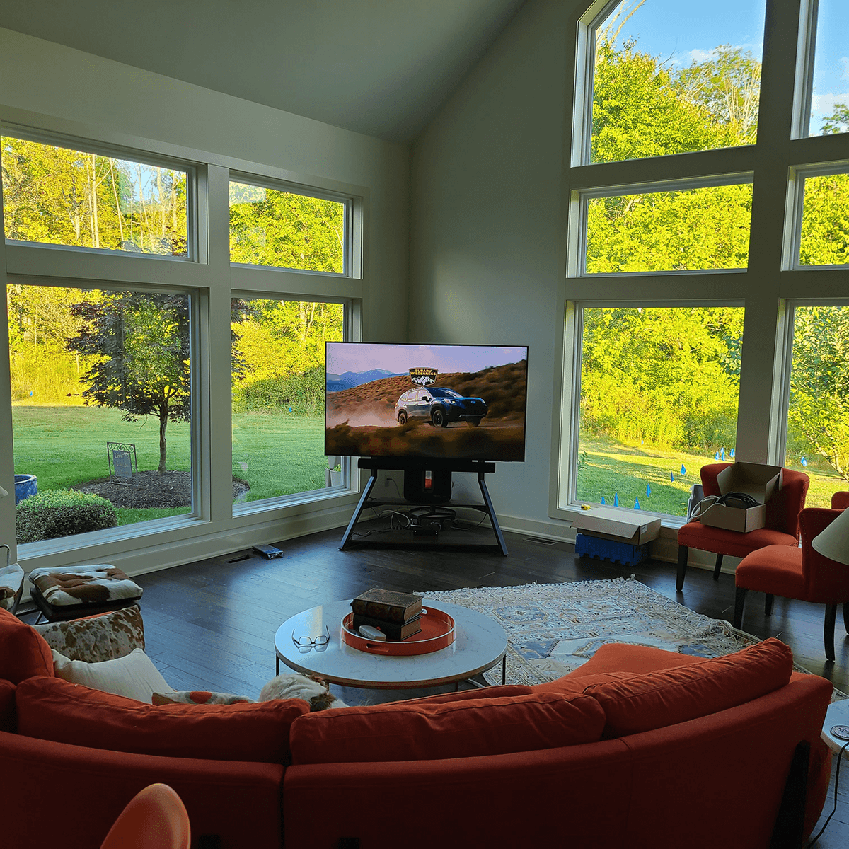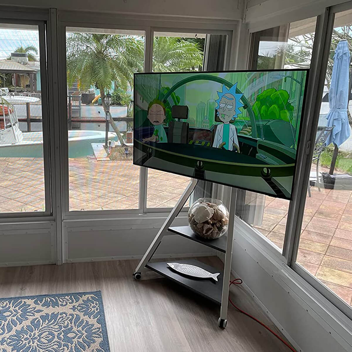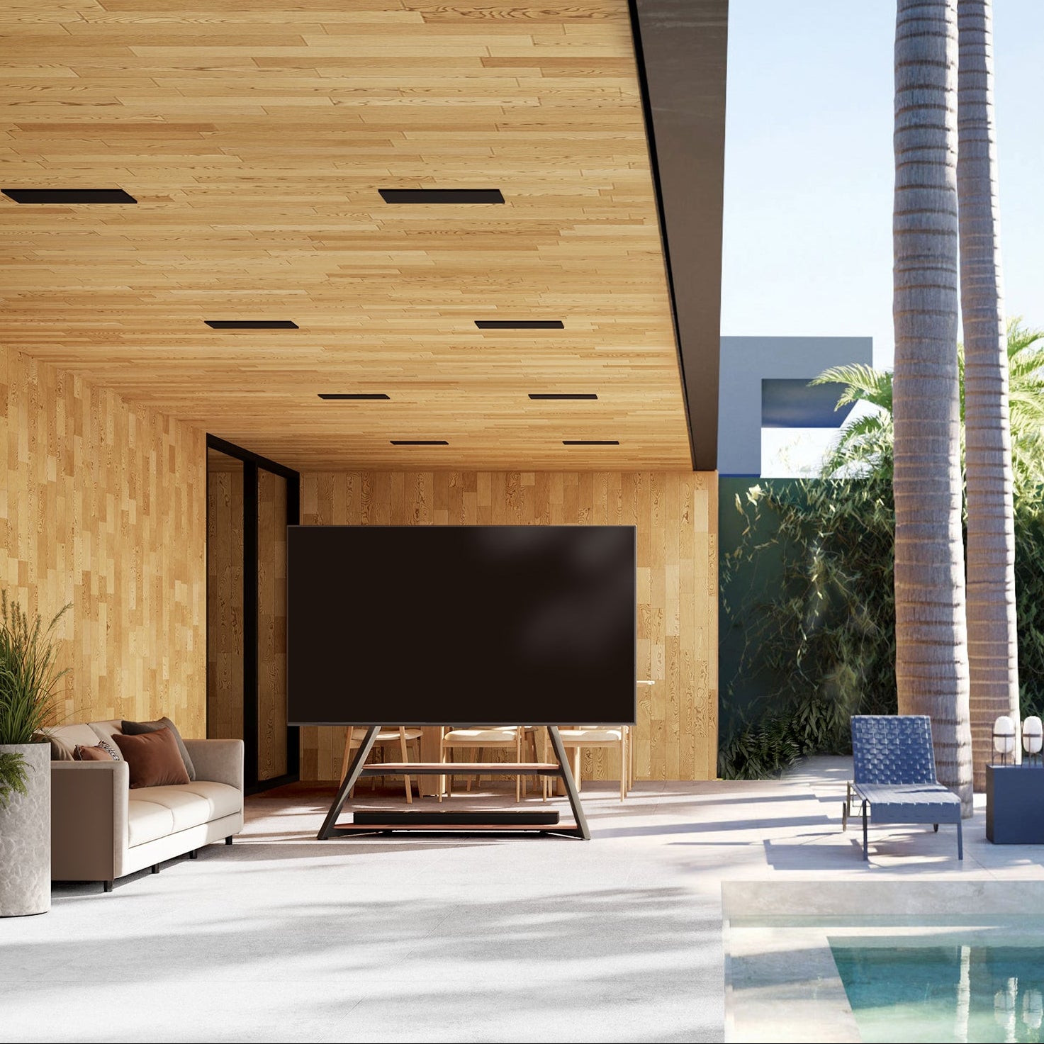 Los soportes de TV de la serie Eiffel están equipados con ruedas para que pueda moverlos rápidamente tanto en interiores como en exteriores. Así podrá disfrutar de sus experiencias audiovisuales en cualquier momento y lugar.